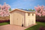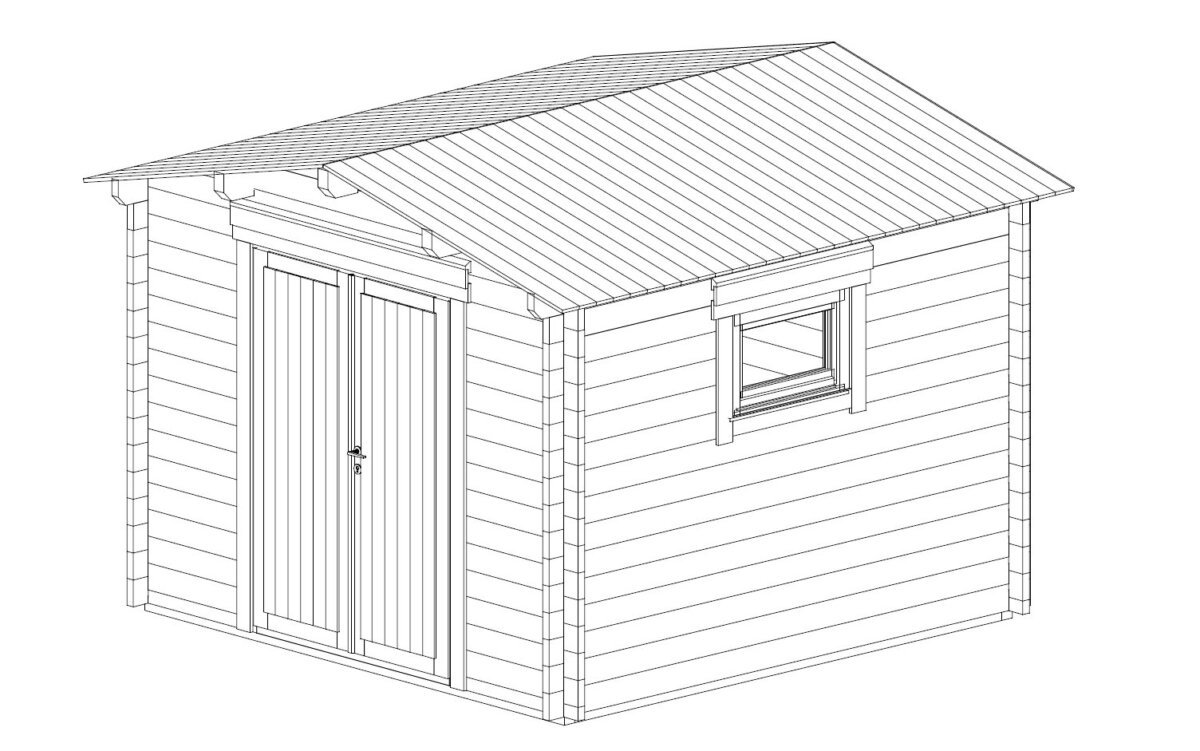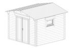 The Nora shed features a large, double wooden door for easy access and two opening windows with double-glazed tempered safety glass, allowing natural light to fill the interior. The strong 28mm floor and included treated foundation joists ensure a solid and long-lasting structure.
